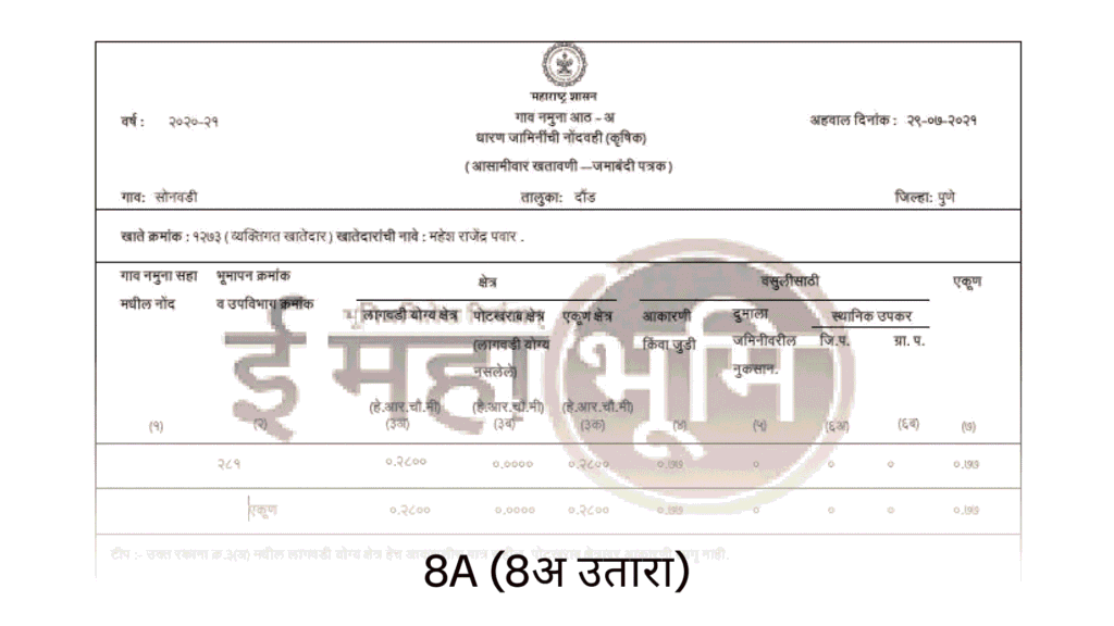 👉 यामध्ये जमिनीचा मालक, क्षेत्रफळ आणि कर्जाची माहिती असते.